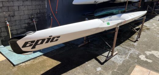 Surfski NELO Ocean Ski. Totalmente em carbono pesando 10kg. Comprimento 6,5m por 0,42cm de largura.