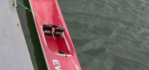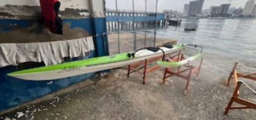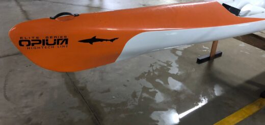 Surfski Nelo Life Saving, construção WWR, comprimento 5,8m e peso 14kg aproximadamente.