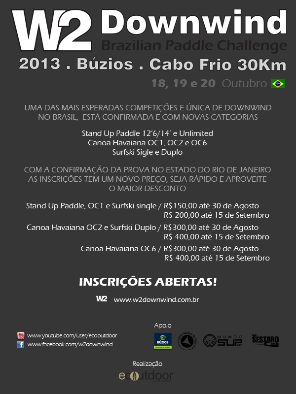 As inscrições podem ser feitas atrás do site do W2 DOWNWIND, neste link: