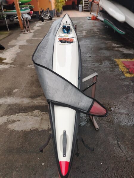 Caiaque Surfski Epic V10 Sport com capa e remo bipartido também com capa. Barco sem histórico de reparos