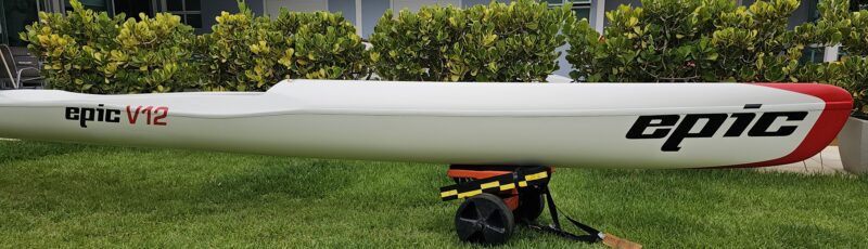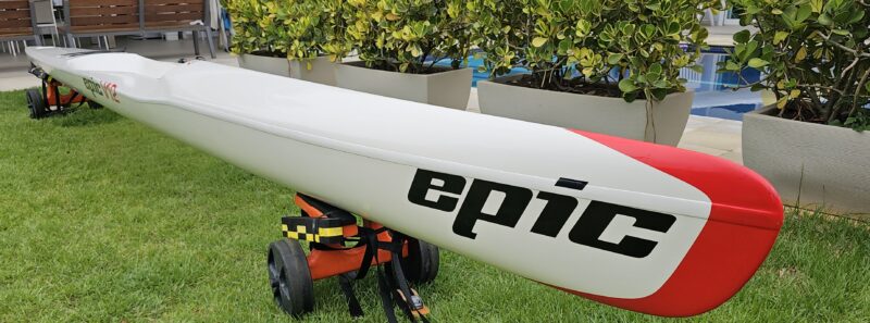 EPIC KAYAKS – Surfski Epic V12 Ultra 2gen, muito bom estado de conservação, pronto para uso, branco com bico vermelho, São Sebastião,SP