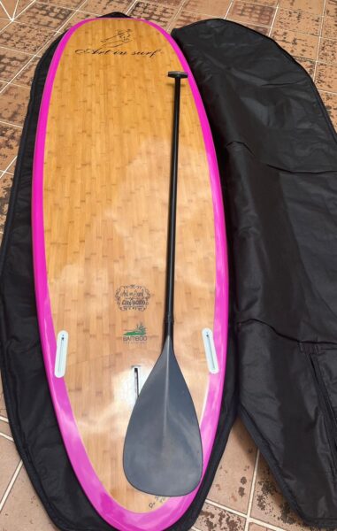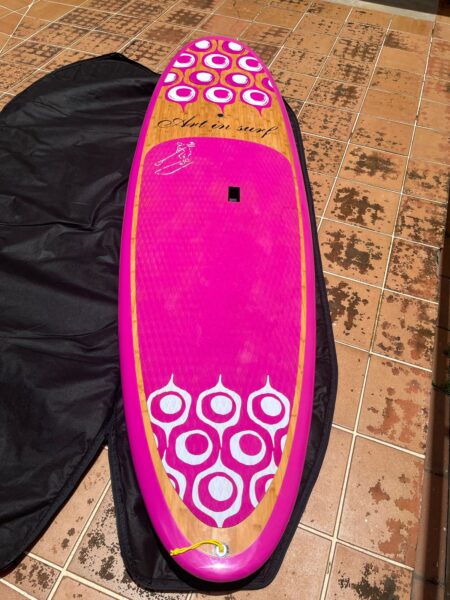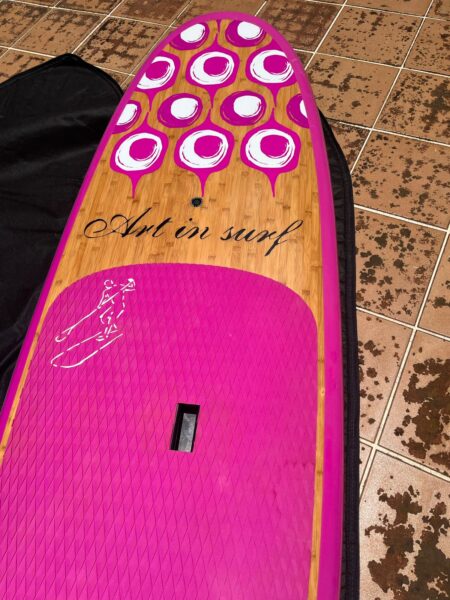 “Prancha Stand Up Art in Surf 9’6” SEMI NOVA POUQUISSIMO USO – Desfrute da Elegância e Desempenho Superior! Esta prancha apresenta 9’6” de comprimento, oferecendo estabilidade e manobrabilidade ideais. Além de sua deslumbrante cor rosa, possui construção robusta da Art in Surf, garantindo durabilidade. Pouco usada, acompanha remo e capa para uma experiência completa.